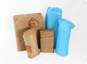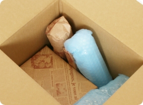 商品の隙間に新聞紙を敷き詰め、エアーキャップで蓋をし、さらに新聞紙を敷き詰めます。