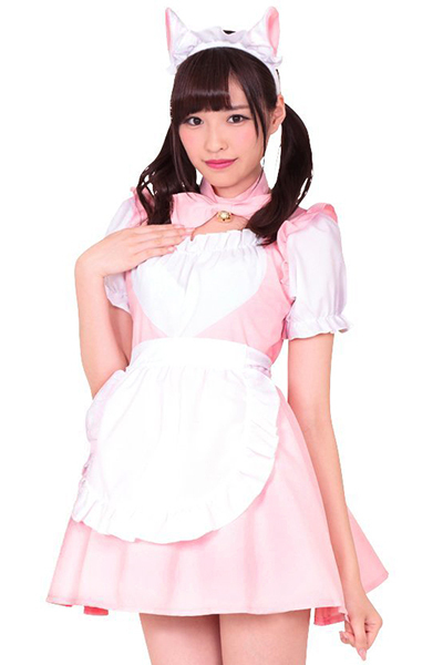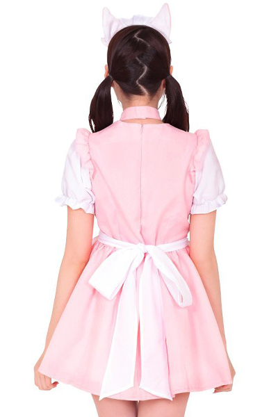 ネコ耳と鈴付きの大きなリボンが可愛い!メイド コスチューム「いちご☆メイド ピンク」。裾や縁取りにはレースフリルを使用しているので、ふんわりボリュームたっぷり!ワンピース・エプロン・チョーカー・カチューシャの4点セットです。