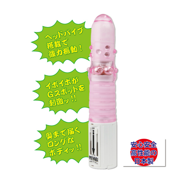 超最強の番長が今ここに!ロングボディのストレートバイブ「イボマラ番長」。名前とはウラハラな可愛らしいピンクボディ!ヘッドバイブを搭載しており、力強い振動が奥まで伝わります!そして、ボディにある無数のイボイボ突起とパール、さらに強力スイングで性感帯のGスポットを捉えます!初心者から上級者まで、お使い頂いた全ての女性を虜にすること間違いなし!日本製なので、安心安全にお使い頂けます。単4電池×3本付属。