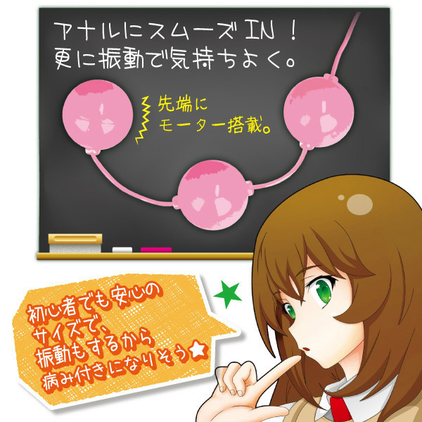 大きすぎず、小さすぎない!ちょうどいいサイズだから初心者から上級者まで満足できる、アナル専用ローター「わたしが選んだとっておきっ」。3つ並んだボールのうち、先端のボールだけにローターを搭載!3段階の強力振動がじんわりとした快感を伝えます。また、操作部本体の先端にブルーLEDを搭載!秘部をイヤらしく照らしてくれるので、ムード作りもバッチリ!見て、使って、大満足できるアナル専用ローターです。単四電池×3本付属。