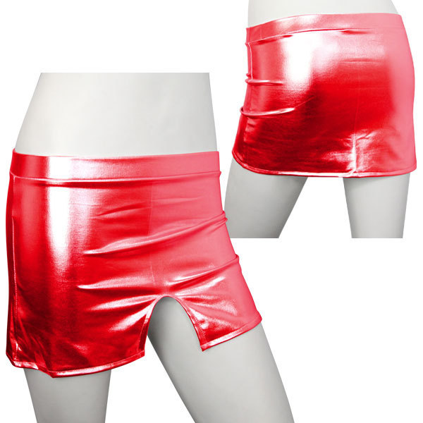 ド派手なレッドカラーの超お目立ちアイテム!キラッキラのツヤ感溢れるスリット入りミニスカート。●メタリックなレッドカラー●タイトなスリット入りスカート●ボディにフィットする伸縮素材●スリットは前後どちらでも可。クラブやイベント、ダンス衣装にぴったり!目立ち度バツグンのシャイニーなレッドカラーですが、デザイン自体はとってもシンプルなのでコーディネートしやすいアイテム!中央部分に入ったスリットは前でも後ろでも着用OKです。