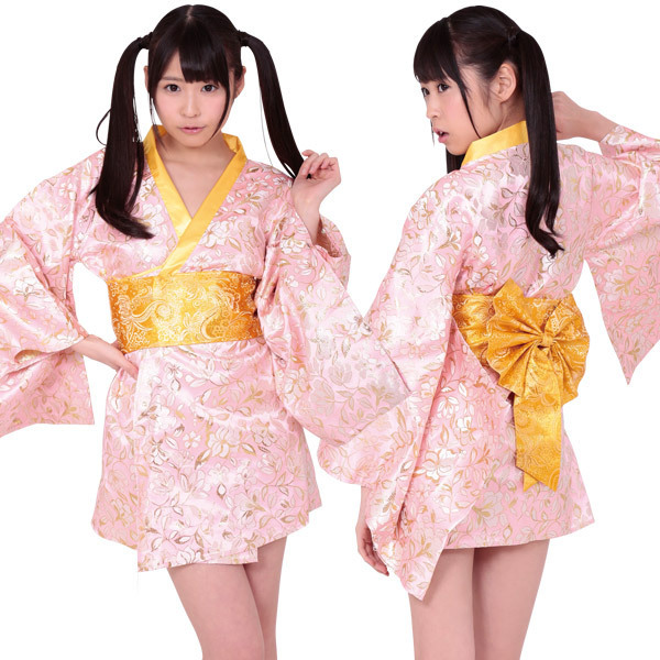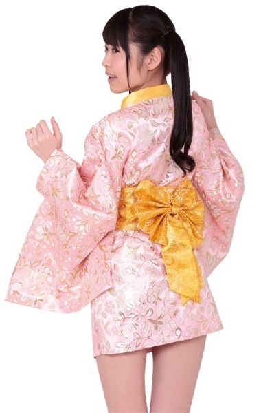 艶やかなサテン生地で仕上げた淡いピンクのミニ着物ワンピース。●乙女色・淡いピンク×ゴールドカラー●ミニ着物&作り帯●Mサイズ。普通に着て可愛さをアピールするもよし!ちょっぴり着崩してセクシーさをアピールするもよし!着方次第で違った雰囲気をお楽しみいただけるオシャレなミニ着物です。
