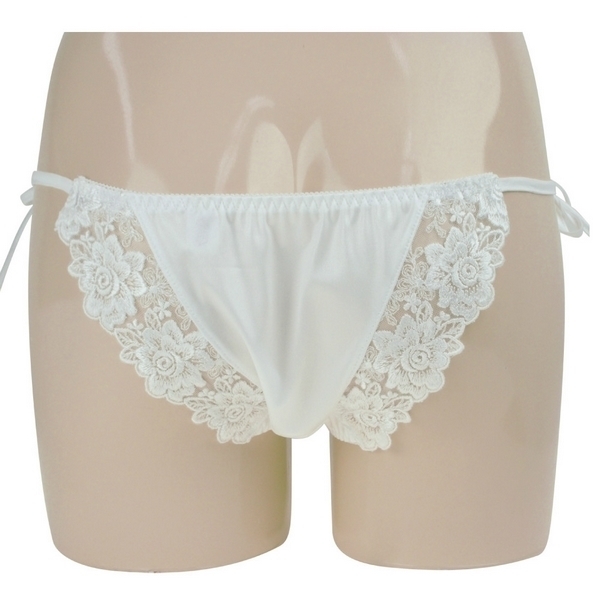 光沢×フラワーレースでエレガントにセクシーアピール♪オープンクロッチのレディースショーツ。●光沢感のある美しいフェリカ生地●ホワイトカラーのケミカルレース●フロント中央にお花モチーフ●バックは幅広レースのフルバック●クロッチスリットのオープン仕様●レディースMサイズ・日本製。前後で異なる表情を魅せる縁取りレースがポイント♪ツヤ感のあるフェリカ生地とレースコンビが美しいフェミニンデザインのオープンランジェリーです。