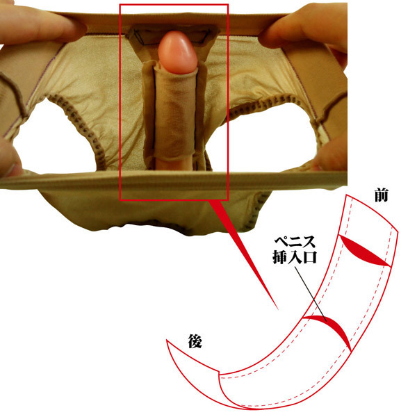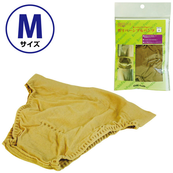 その日の気分で変身♪男女どちらも楽しめるハイブリッドな女装用パンティ「性リバーシブルパンツ(M)」。●肌触りの良いベージュ色のブリーフ●伸縮性抜群のストッキング生地を使用●パンティの前後に筒状のペニス収納袋●下向き装着:女性感覚ですっきりと収納●上向き装着:ペニスを擬似勃起状態で維持●フリーサイズ(最大ウエスト約85cm)●ペニスト筒サイズ(M):8.0×2.1cm。あなたの願望叶えます♪男女どちらにも固定可能な筒を内蔵!股間処理が簡単に出来るショーツ型のペニストッキング。下向き固定の場合はクロッチをずらせばそのまま排尿も可能!ピタっと密着するので包皮を剥いたまま固定すれば、包茎矯正用としても効果を発揮します。※品名のサイズ表記は「筒のサイズ」となり、ショーツは3サイズ全てフリーサイズです。
