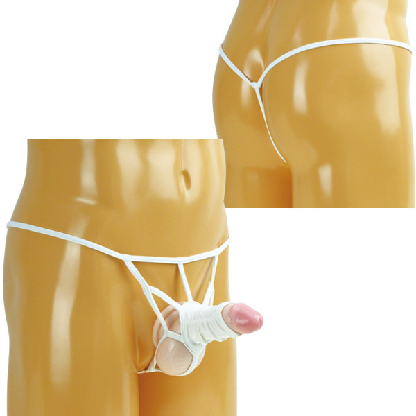 大胆に誇張するセクシーデザインでより逞しく♪肌触りの良いウェット生地の男性用オープンショーツ。●すっきりシンプルホワイトカラー●水着にも使われるウェット生地●ストリングのみで繋いだフロント●すっぽり包む筒状ハーフポケット●Vバックのストリングデザイン。開放的なストラップデザインで隠さずに強調するメンズ下着!肌触りの良いウェット素材ではき心地も抜群です。
