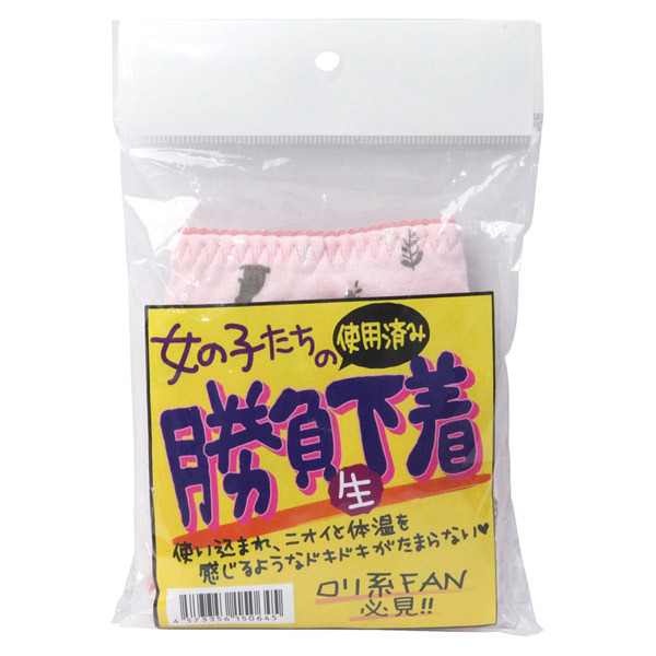 コレクションに加えたいお宝アイテム!ニオイと体温を感じるようなドキドキ感がたまらない使用済みパンティ「女の子たちの勝負下着 ロリFAN必見!パンティー」。使用済みの可愛いパンティー1枚入り!パンティのデザインはランダムなアソートタイプ。アブノーマルな妄想オナニーのお供にもぴったり!アイデア次第で遊び方も色々なフェティッシュグッズです。