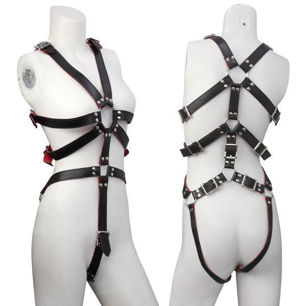 SMプレイの深淵へと導く!赤と黒のフェイクレザーが妖艶な『ABYSS』シリーズのSMグッズ「Abyss(アビス) 亀甲プレイスーツ」。亀甲縛りのようなデザインで緊縛感も味わえるSMプレイスーツ!各ベルトでサイズ調整可能、材質はフェイクレザー・鉄。※モデル身長165cm・B88cm・W59cm・H85cm※モデル着用のニップルタッセル、ショーツ、ストッキング等は付属しておりません。