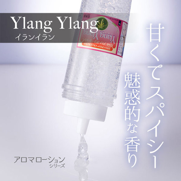 国産原料を100%使用した安心・安全な日本製の「アロマローション」イランイラン(150ml)です。セクシーでオリエンタルな香りは人気が高く、気泡が入った透明タイプで見た目も美しく、使い心地も抜群。イランイランの甘くてスパイシーな香りがほんのりと漂い、芳しい香りに包まれるようなプレイを楽しむことができるローションです。
