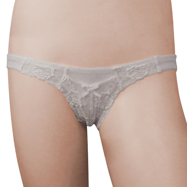 ホワイトシースルーとフラワーレースで視線をキャッチ!フロントポケット付きのレディースショーツ。透け感のあるフローラルレースのフロントにお手持ちのローターを収納できるポケット付きランジェリー!後姿はセクシーなホワイトシースルーのフルバックタイプです。※ローターは付属しておりません。