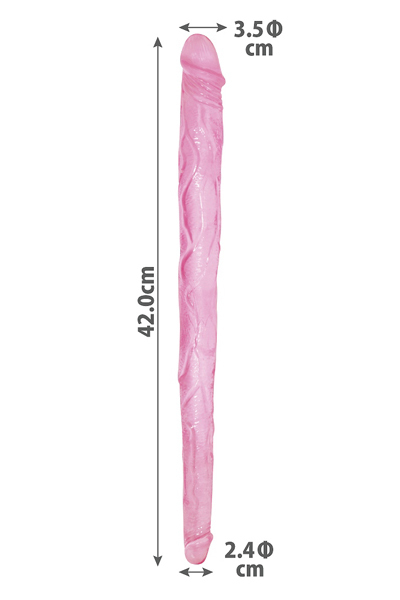 一人で2穴挿入も可能!リアルな造形が興奮を誘う長さ約42cmの双頭ディルド。二か所同時に挿入できるほど柔軟に曲がるしなやかさと、心地よい挿入感を生み出す弾力が貴方を虜にする♪一人は勿論、カップル同士で是非お試しください。先端サイズが異なるSサイズ