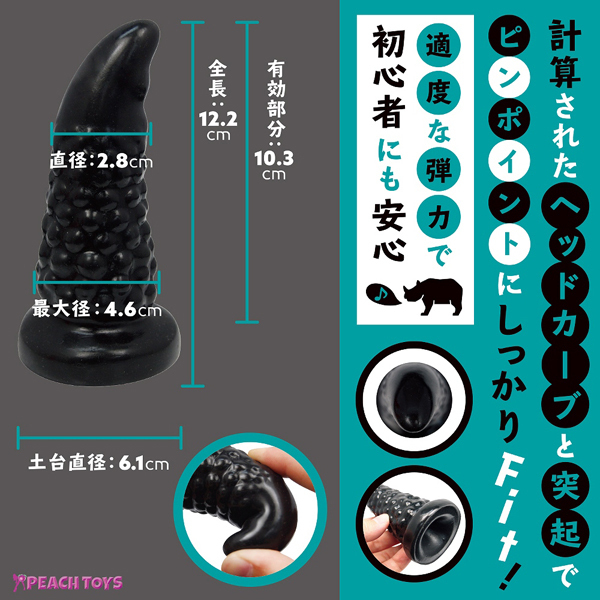 ツノを立てたような計算しつくしたカーブ形状が欲しいポイントに適確にフィットする!96粒のイボが付いた日本製のアナル専用ディルド(黒)。奥に挿入するほど太くなる形状は見た目以上に刺激的!プニプニとした程よい弾力と柔軟なボディが絶妙な快感をもたらします♪