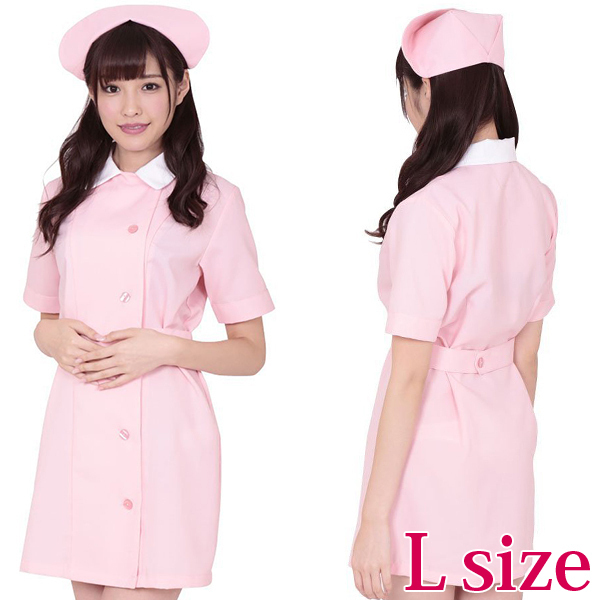 仕様:Lサイズ:B86〜94cm・W69〜77cm・H92〜100cm セット内容:ナースワンピース、ナースキャップ、ピン2本