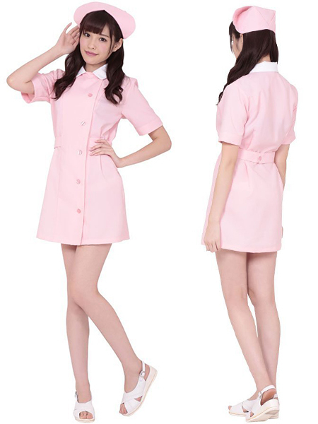 淡いパステルピンクで魅力倍増♪可愛いけど、どこか大人の色気を感じさせる人気のミニ丈ナース服に大きめサイズが登場!ナースキャップが付いた本格派デザイン♪病気の時には天使のような微笑みで癒してくれそうな可愛いナースコスプレです。