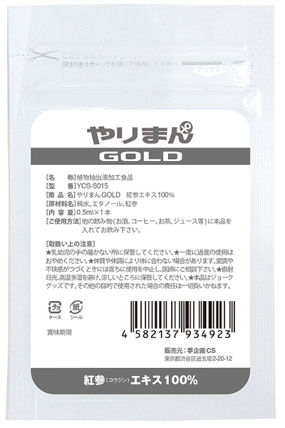 うずきが止まらない「やりまんGOLD (紅参エキス100%)」!他の飲み物の本品を入れて薄めてお飲み下さい。