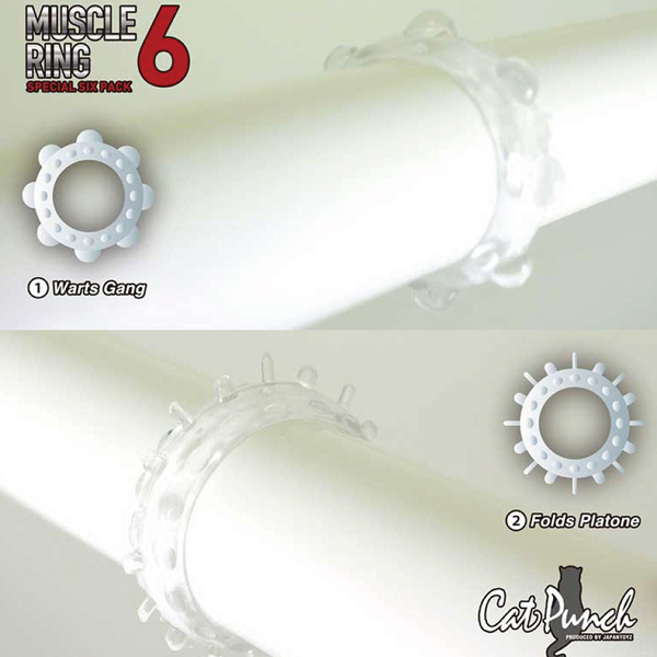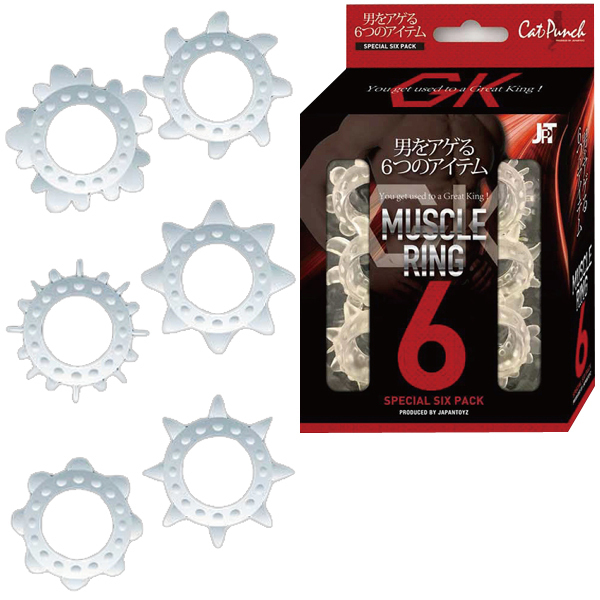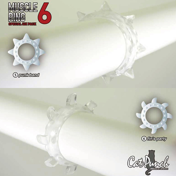 6つの個性豊かな形状が楽しめる高級シリコン素材のペニスリング。締め付けはもちろん気持ちよさや持続性、硬さなどを好みによって選べる6種類のリングが付属したお得なセットです♪