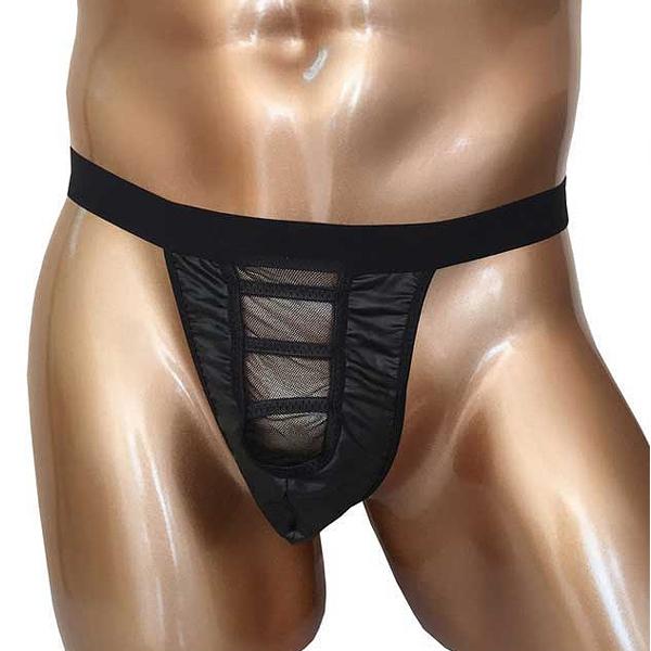 涼し気なブラックメッシュの窓が小悪魔な魅力を放つ男性用GストリングTバック。シアー素材から覗くシンボルに目が釘付け♪ウエストは安定感のある太めのゴムでしっかりホールド!ブラックカラー、フリーサイズ