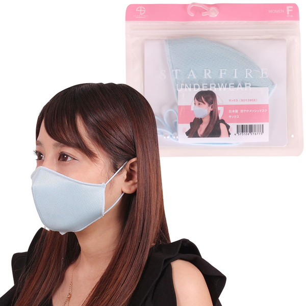 日本製 涼やかメッシュマスク サックス
