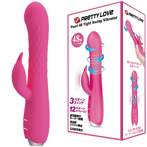 48個の回転パールが膣内を掻き乱す!3種のスイング&12種類の振動機能が付いたUSB充電式バイブ。8段×6連で設置されたパールがスイングと連動して強力回転!さらに追い打ちをかけるように高性能モーターを搭載した子機で敏感ポイントを徹底刺激する♪生活防水加工を施した高品質シリコンボディ仕様◎個別での動作操作も可能