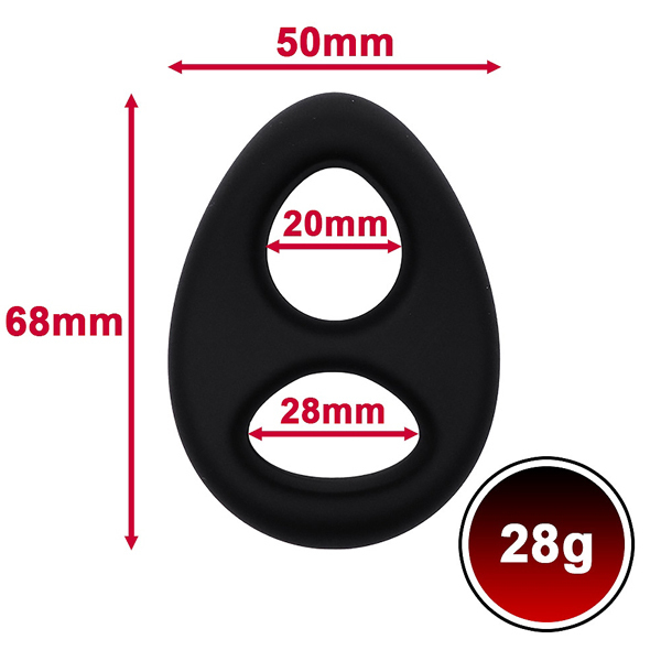 タマタマとサオの2点を同時に締め付けられる2穴タイプのコックリング!射精力と勃起力アップを狙えるのがダブルの特徴で、厚みがある幅広タイプなのでしっかりとした締めつけ感になってます!素材にはウォーターシリコンを採用しており、普通のシリコンよりも柔らかで、握るとムニムニっとした感触が強めですが、幅広サイズなので締めつけ感はしっかりしてます。
