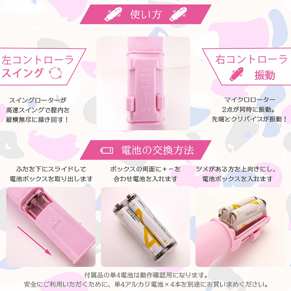 安全エラストマー素材で作られた、ポルチオ&クリトリスを同時に刺激する3点責めバイブが登場!「レッスンバイブ(ポルチオ)」と銘打ち、3つのモーターと6Vパワーで繰り出される振動やスイングにより、瞬く間に快感へと誘います。ヘッドがポルチオ性感帯をツンツン刺激し、先端のポッコリがGスポットを刺激♪クリバイブは2本のツノが高速タップし、つぶつぶがクリトリスを包み込むように密着!小さな尻尾はアナルに快感を伝えます。無段階スライドなので、すぐにでも即イキの組み合わせが見つかり2つのコントローラで個別に操作できるため、プレイの幅は実に多彩。電池BOXは取り外し可能でメンテナンスも簡単♪細かな粒イボがポルチオをほじくり、柔らか素材を使用したランシークレットシリーズのバイブは女性器の性感開発をサポートし、アナルにも刺激を送り、特に刺激的なモデルとなっています。クリでイキたい人も、中イキ未経験の人にも満足な欲張りバイブです。