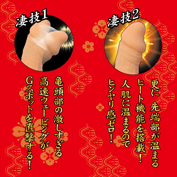 リアルタイプのディルドに特殊なアクションとバイブ機能とを搭載したトレートタイプのバイブレーター「Gスポ開発の達人」。亀頭部分の上下するウェービングアクションがGスポを的確に刺激!ノッキングするように刺激しながらGスポイキを誘発してくれます♪大きさ的にもミドルサイズでちょうどよく、色味やフォルムなどの見た目がリアルディルドっぽいので亀頭や余り皮、血管といったギミックとも相まって、視覚的にも興奮を掻き立ててくれます。無限にそそり勃つような上下の7パターンの動きが心地よく、Gスポを狙えばノッキングするような刺激が、同時に7パターンのバイブ機能がお楽しみいただけます♪電源はUSB充電式電池切れの心配も不要!高品質シリコン素材で先端付近にはヒート機能も搭載されているので人肌な温もりとリアルな挿入感がお楽しみいただけます。