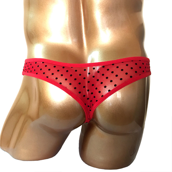 他とは差をつけたいメンズアイテムならコチラ!バッドダディブランドから情熱的な赤いシースルー生地のワイルドビキニパンツが新登場♪すいかの種のような水玉ドットがキュートさを演出します。