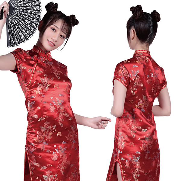 ロングのスリットからチラリと覗く美脚が魅力的なチャイナコスチュームです♪本格的なチャイナ・ガールに変身できるデザインで、長めのスリットが妖艶な雰囲気を演出!タイトなシルエットでボディラインもしっかりアピールでき、両サイドの長いスリットが脚を綺麗に魅せつつドレスの中も想像させるデザインとなっています♪襟元も生地の柄も伝統的なチャイナっぽさを踏襲した秀逸なデザインとなっています。
