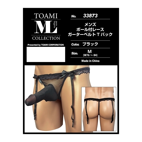 メンズ ポール付レースガーターベルトTバック ブラック