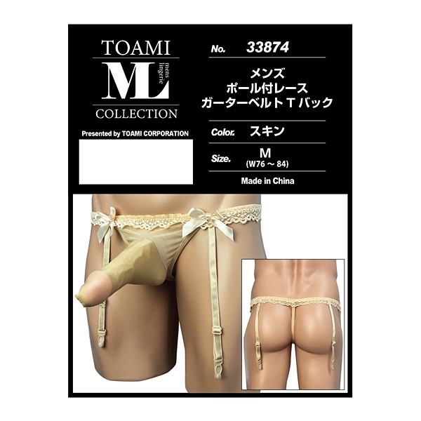 メンズ ポール付レースガーターベルトTバック スキン