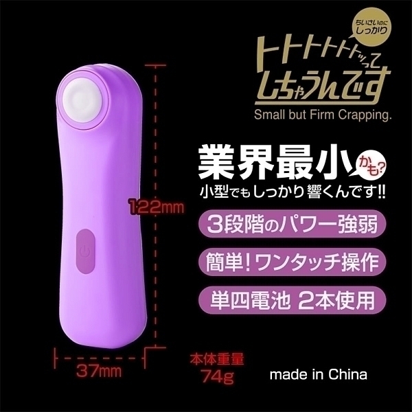 叩く様な刺激の新感覚ローターが登場です。その名も「トトトトトトッってしちゃうんです」。使い方は簡単!単四電池2本を入れ、電源スイッチ長押しでスタート。あとは電源スイッチを短押しすることで、3段階のパワー強弱をお楽しみいただけます。本製品は小型で簡易的なモデルですが、刺激は意外とパワフル。十分なパワーを発揮し、しっかりと楽しめることでしょう。●カラー:パープル