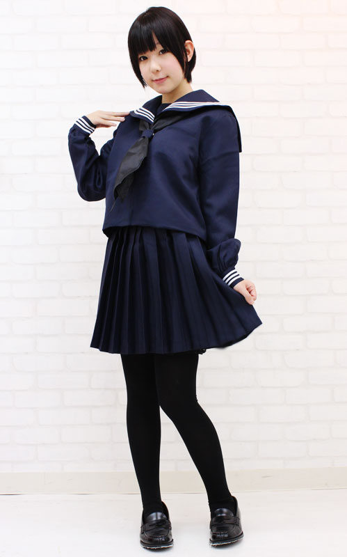 大きめスカーフが特徴の制服コスプレ!長袖の冬服バージョンです。スタンダードなデザインの紺一色の上下に、スカーフもセット!一式揃ったセーラー服のコスプレ衣装です。襟と袖口には三本ライン、胸元には刺繍入り。※水洗い不可、塩素系漂白剤による漂白不可、アイロンは中温で当て布使用、ドライクリーニング可、色落ちの可能性があります。※こちらの商品は在庫の状況によりお届けまでに4日〜7日程度かかる場合がございます。