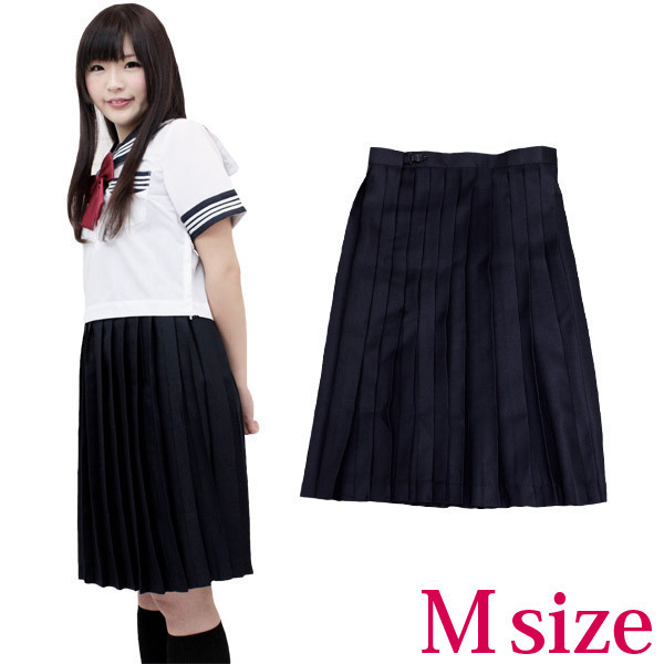 清楚な制服といえばやっぱりコレ!シンプルな無地の紺色プリーツスカート(M)。膝まである長めの丈が、お嬢様なイメージをさらにアップさせます。オーソドックスなデザインは何にでも合わせやすくて便利!セーラーブラウスはもちろん、普通のブラウスにもピッタリ。一枚はマストで持っておきたい、制服コスプレには欠かせないコスチュームです。※こちらの商品は在庫の状況によりお届けまでに4日〜7日程度かかる場合がございます。