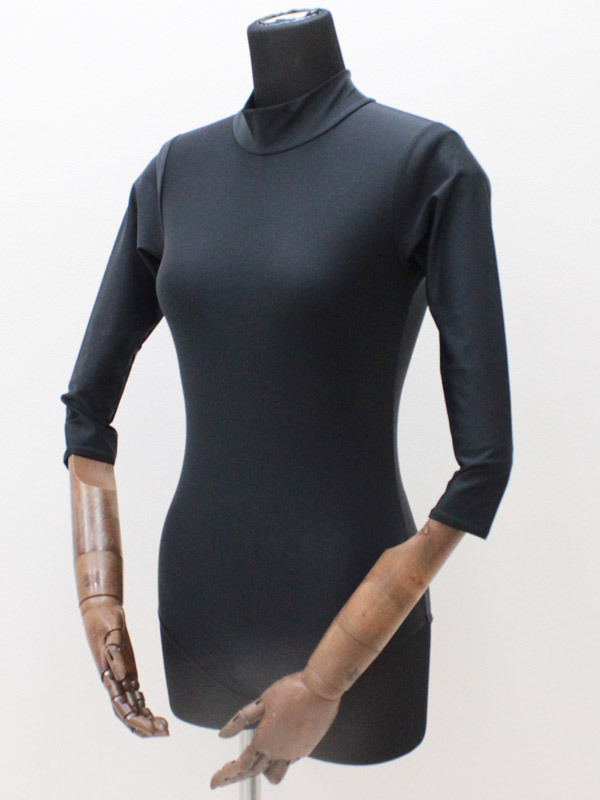 ブラックカラーのスタンダードな七部袖丈ハイネックレオタード単品(BIG)。伸縮性のある柔らかな素材を使用!身体にそっと寄り添うように優しくフィットし、ボディラインを美しくセクシーに魅せてくれるコスチュームです。※水洗い可、塩素系漂白剤による漂白不可、ドライクリーニング可、色落ちの可能性があります、ご注意ください。※こちらの商品は在庫の状況によりお届けまでに4日〜7日程度かかる場合がございます。