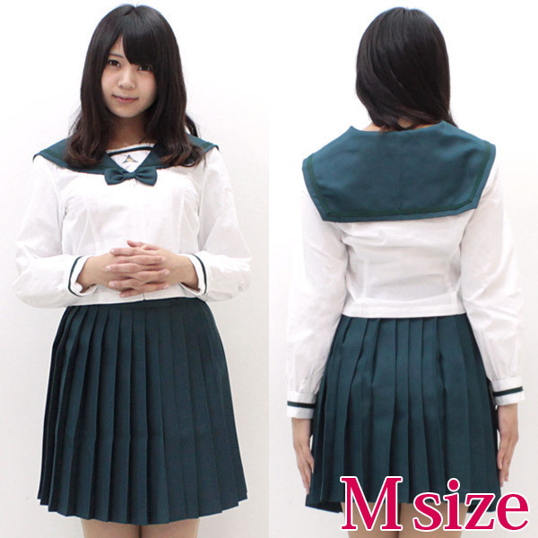 深く濃いグリーンが珍しくて人気!本物そっくりに仕上がった長袖セーラー服のコスチューム。落ち着いた雰囲気を感じさせるダークグリーンで、しっとりとお嬢様っぽく振舞っちゃおう!トップスは前ファスナーで簡単着脱が嬉しい、エレガントな制服衣装です。※水洗い不可、塩素系漂白剤による漂白不可、アイロンは中温で当て布使用、ドライクリーニング可、色落ちの可能性があります、ご注意ください。※こちらの商品は在庫の状況によりお届けまでに4日〜7日程度かかる場合がございます。