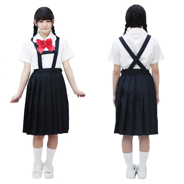 真っ赤なリボンがポイント!前後どちらから見てもキューンとくる制服コスプレ。●B〜108cm・W〜91cm・男性でも着用可能なBIGサイズ●ブレザー(胸ポケット刺繍入り)●キュートな丸襟ブラウス●乙女チックな吊りスカート●存在感バツグンな赤リボン●長袖(冬制服タイプ)。ブレザーあり・なし、どちらでも可愛く着こなすことができるお得な制服コスチュームです。※水洗い不可、塩素系漂白剤による漂白不可、アイロンは中温で当て布使用、ドライクリーニング可、色落ちの可能性があります。