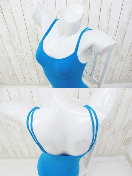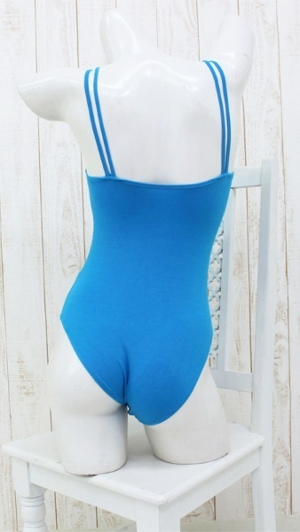 キレイで涼しげなブルーカラーのキャミソール風レオタード(M)。●レオタード単品(前面当て布付き・胸部分シャーリング調節可)●素材:綿100%●肌に優しくフィット●肩紐:ダブルストリング。シンプルなデザインだけど着てみるととってもオシャレなレオタードのコスプレ衣装です。※水洗い不可、塩素系漂白剤による漂白不可、アイロンは中温で当て布使用、ドライクリーニング可、色落ちの可能性があります、ご注意ください。