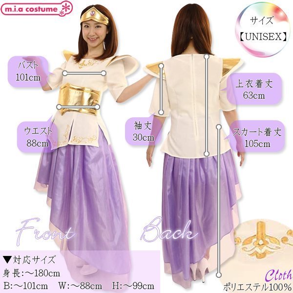 仕様:男女兼用サイズ:身長〜180cm・B〜101cm・W〜88cm・H〜99cm・着丈(上衣63cm・スカート105cm)・袖丈30cm) セット内容:上衣(背中心ファスナー)、スカート(ウエストゴム)、ヘアバンド 素材:ポリエステル100%
