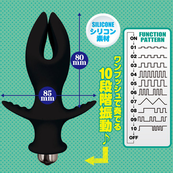 お尻の中で弾ける快感!尻穴でパカッと開口するシリコン素材の電動アナルプラグ「お尻パックンチョ ブラック」。お口を閉じてアナルへIN!チカラをギューッと入れたり緩めたりすることで、口部分がパクパクと反発します。また、ローターにはワンプッシュで操作可能な10段階の振動機能も搭載!よりエキセントリックなパックンチョ感を楽しめちゃう電動アナルグッズです。
