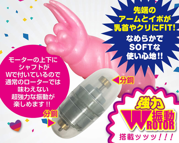 チチやクリにピタっと振動!強力W振動ローター搭載。モーターの上下にシャフトがWで付いているので、通常のローターでは味わえない超強力な振動が楽しめます!!