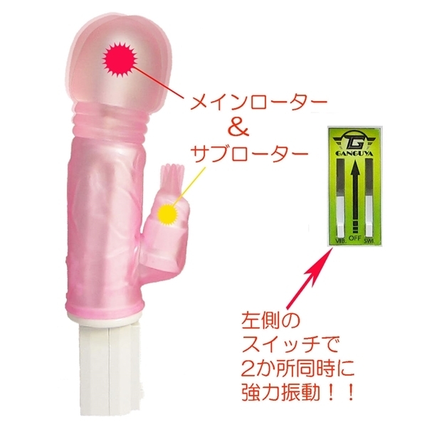 これぞモンスター級!最大直径が5cm強で極太ボディの高性能バイブ・ガイ キャノン ピンク。先端部分にメインローターである小型マイクロローターを搭載し、電マにすら負けず劣らずの細かな振動波がヘッド全体に伝わります♪子機部分のサブローターは舌でペロペロされているかのような快感でクリイキ間違いなし!電池のセットも簡単なリモコンBOXはハイパワーの6ボルト。振動機能は低速から高速まで無段階で調整できるのでお好みの振動&ローリングで絶頂へ至ること間違いなし♪