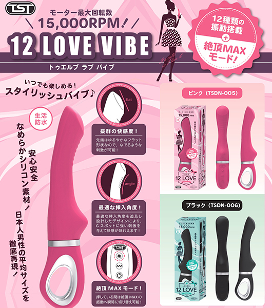 12LOVEシリーズからスタイリッシュバイブが新登場!静音タイプながら弱振動から強振動の12パターンを搭載し、ボタン1つで簡単ラクラク操作♪ボタン上部を押している間はモーター最大回転数15000RPMの超強力振動により一気に絶頂MAXへと導きます。バイブの先端はゆるやかなフラット形状なので、なでるような刺激が可能となり抜群の快感度を実現。最適な挿入角度を追及した設計デザインとなめらかな高品質シリコン素材によりGスポットへ強い刺激を与えます。本体は安心の生活防水で、付属の単4電池×2本によりすぐ使用できます。●カラー:ピンク