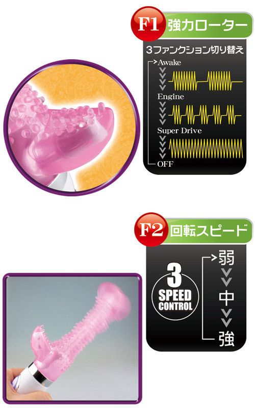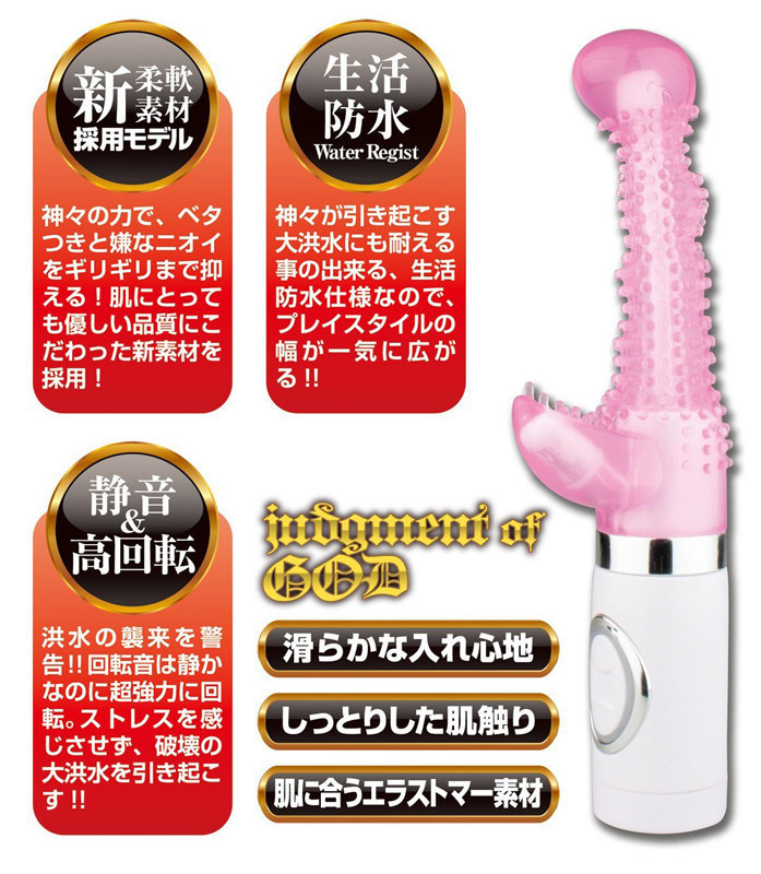 これぞ最新のGODバイブ!肌に優しいこだわり品質の新柔軟素材を採用したスイングバイブレーター。本体はハイパワーな高速回転を実現するも、音はとっても静か。丸い先端&イボ突起がびっしり付いた細身ボディが、膣内&クリにゾリゾリとした刺激を与えて絶頂へと導きます。お好きな場所でプレイ&使用後のお手入れが簡単にできる生活防水仕様のバイブレーターです。