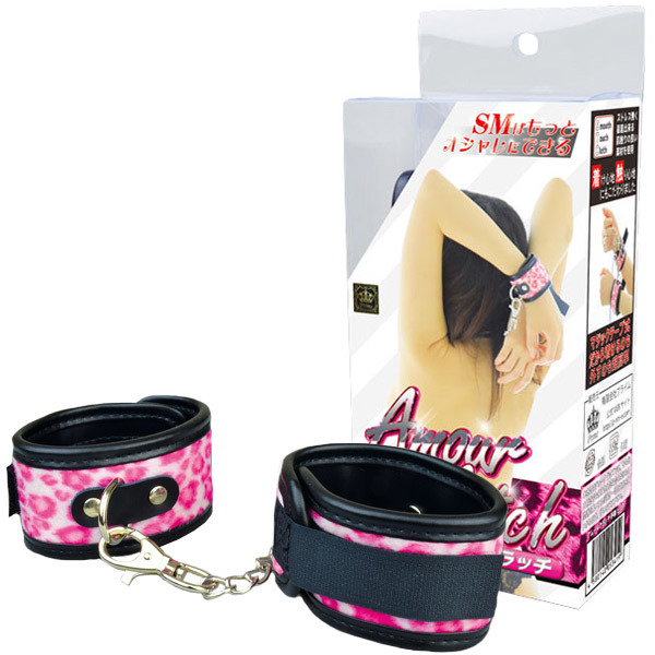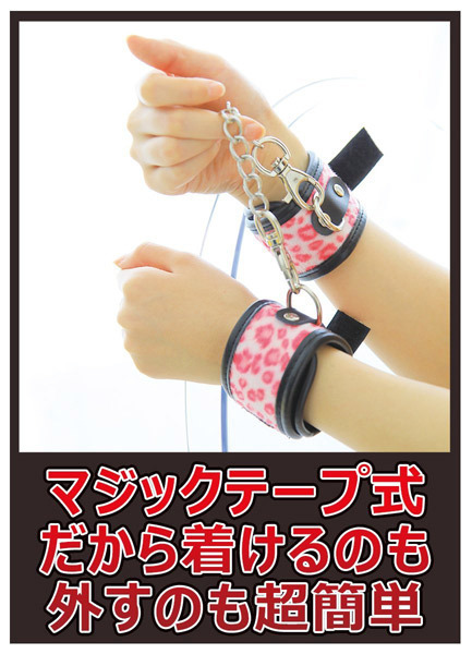 オシャレで可愛い♪ファッショナブルなSMグッズシリーズ「アムールクラッチ 手枷 豹ピンク」。●豹柄ピンクのチェーン手枷●肌触りの良いフワフワ素材●着脱簡単なマジックテープ式●チェーンは取り外し可能●お手軽にSMの雰囲気を演出。オシャレなSMグッズでマンネリ解消!着け心地と触り心地にもこだわった「アムールクラッチ」シリーズのSMグッズ。拘束プレイで本能が覚醒!いつもとは違う快感をパートナーとお楽しみ下さい。