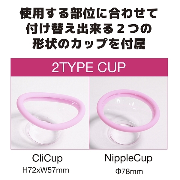 二本の指でクリクリされているような疑似体験が楽しめる特殊アクション搭載の責めアイテムです。さらに吸引機能も搭載されているので吸われながらクリクリ責めされる新しい刺激が楽しめます。部位に合わせてチョイス出来る取り外し可能な二つのカップ付属。肌触り滑らかな高レベルのシリコン素材採用。とにかく感じる!?めちゃ責めローター。IPX6の高性能防水だからしっかり洗えて衛生的に使用頂けます。120分充電で最大60分使用可能(使用環境により大幅に増減します)