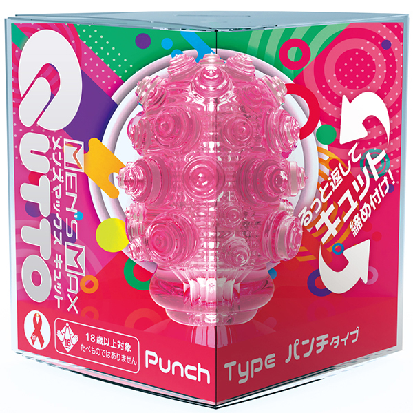 大粒デコボコ刺激がキュット締めつけ!裏返す事で未知なる体験と利便機能を持った変化する密集体ホール。「Qutto−キュット−」は従来よりも突起が大きく、肉厚になった大粒のデコボコ刺激を搭載。使用時に本体の凹凸面を内側に返すことで、内側に向かって大粒のデコボコ刺激が密集。キュット締めつけることで、「未確認の触感」を体験することができます。パンチタイプは、高弾力のボールがみっちりと詰まった形状です。大小のボールとリブの組み合わせによる弾けるような刺激が特徴です。この商品には個装のローションが付属しています。