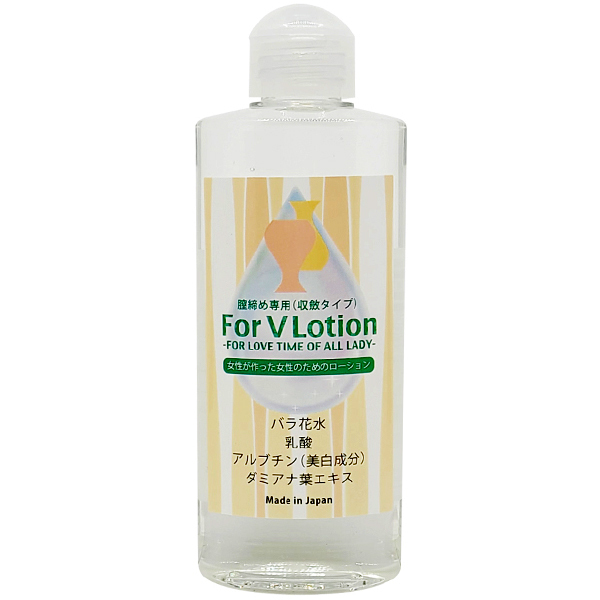 バラ花水、乳酸、アルブチン(美白成分)、ダミアナ葉エキスなど美白効果が期待できそうな良成分がしっかり入った「For V Lotion 200ml」。女性が作った女性のためのローションで、美白ケアやスペシャルな女性を目指したいときに♪