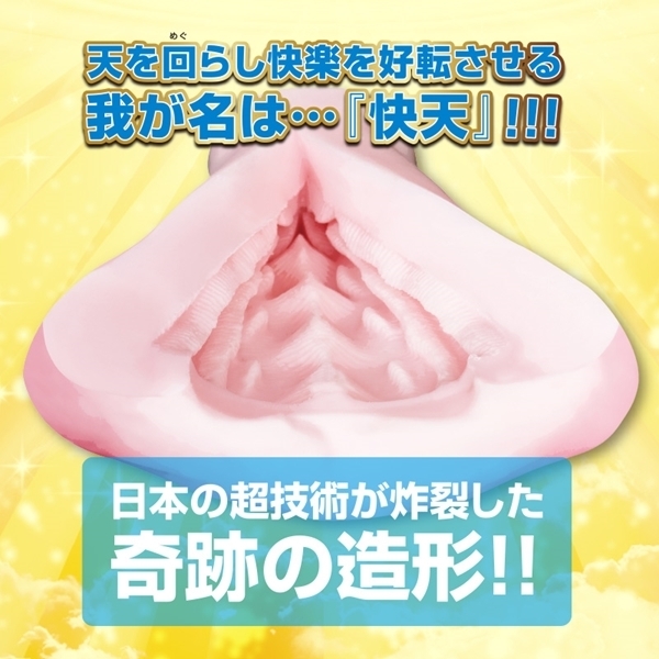 天を回(めぐ)らし、快楽を好転させる!!名は…「快天」!!ここに最高のオナホが完成!「快天」の登場です!!ウェーブした極太ヒダの連続!曲がり曲がって亀頭に吸着し離さない!入り口から何重にも連続するヒダの嵐!天井に極太段々ヒダ!左右や下には波打つ数本のヒダで亀頭をロック!中間では上下で交差するクラッシュゾーン!そして最奥では亀頭を咥え込むヒダゾリが控えている!!最初から最後までヒダに翻弄されるオナホ…まさに「快楽の天国」=快天!!内部ギリギリまで表現したヒダは、まさに芸術の域!日本の型師の超越技術が炸裂した純日本製!奇跡の造形をあなたの亀頭で感じてください。快楽の海に溺れてしまいますよ!