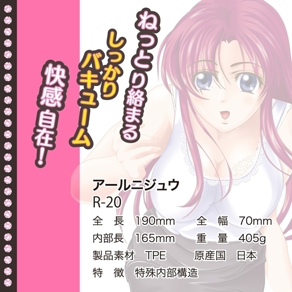 大人気ホール@15の続編が登場!その名も「アールニジュウ(R-20)」非貫通型。ガバ系V溝マニア垂唾のアットフィフティーンの5年後を描いた新作です。時を経て成熟されたかのような複雑な無次元系に一新!最先端のオナホールだけあって突起の存在感は絶妙、絡みつき擦るたびに違った刺激が楽しめます!洗浄・温め可能です。
