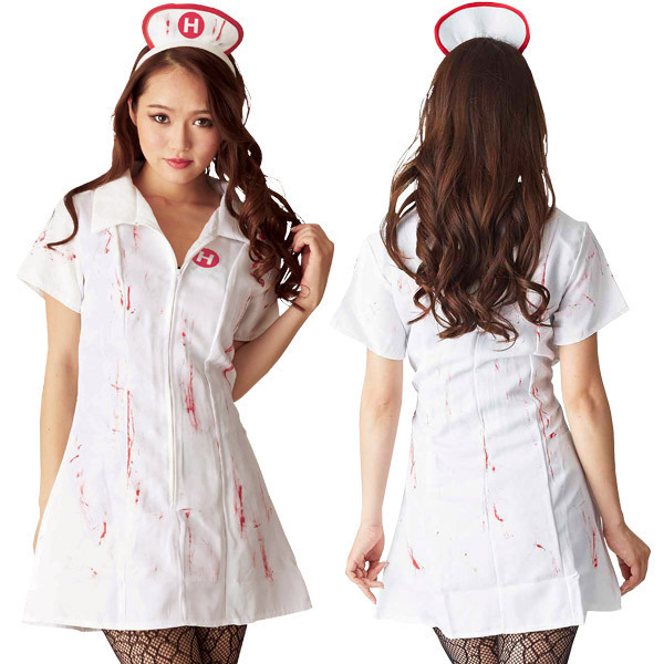 【TOKYO GIRLS COLLECTION】東京ガールズコレクションとのコラボ企画!10代の実業家、椎木里佳を中心に結成された「TOKYO GIRLS PRODUCERS」監修の2016最新ハロウィンコスチュームです。リアルな鮮血でゾンビ感アップ!血のり付きのミニスカナースワンピースセット。●綺麗なAラインのナースワンピ●ゾンビ風の血のり加工済み●前ファスナーで開き具合を調整●裾から15cm上まで開閉可能●ナース帽風のカチューシャ付属●ワンポイントロゴ入り●モデル身長:158cm。生々しい血しぶきを浴びた白衣の天使コスチューム!ハロウィンメイクの定番、ゾンビ風メイクにしてとことん楽しみたくなるホラーなアイテムです。※セット内容以外は商品に含まれません。