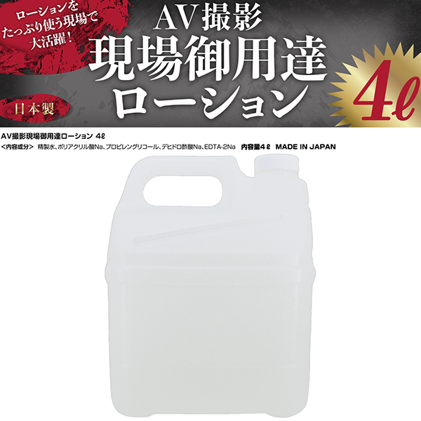 「現場御用達ローション」が、現場からの声を反映し、大容量バージョンで登場です!通常商品と比較して大ボリュームの4Lの徳用版となります。現場で愛用されているので粘度がちょうどよく取り回ししやすい。ローションプレイにうってつけのアイテムとなっています!